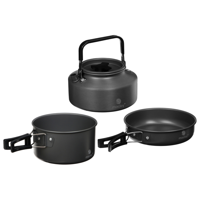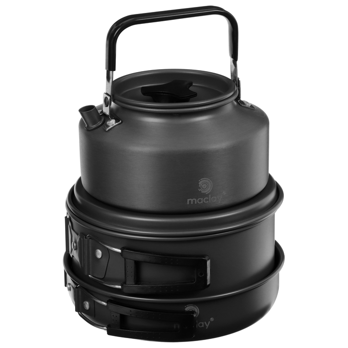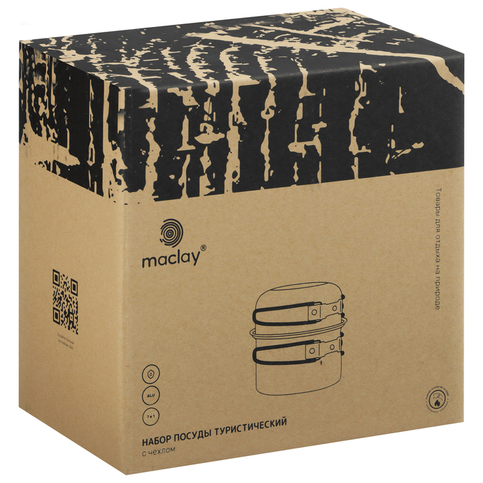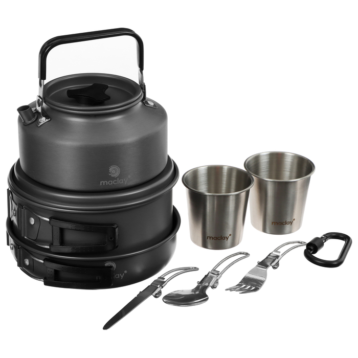 Набор туристической посуды maclay: кастрюля, сковородка, чайник, 2 стакана, приборы, карабин — Характеристики