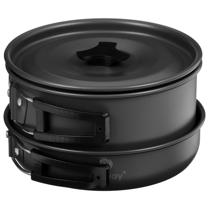- Компактный и лёгкий набор позволяет экономить место в рюкзаке. Предметы складываются друг в друга для удобства перевозки.