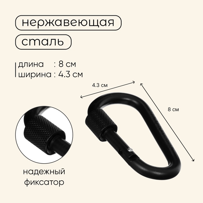 - Карабин с фиксатором позволит закрепить набор на рюкзаке или в любом другом месте.
