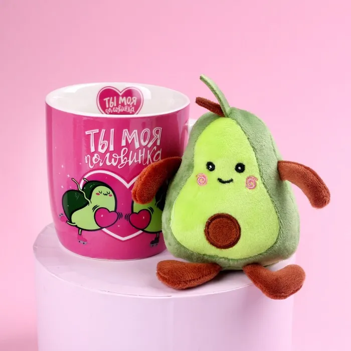 Этот набор не только радует глаз, но и создаёт атмосферу тепла и заботы. Мягкое авокадо станет стильным акцентом в интерьере или любимым другом ребёнка, а кружка — практичным аксессуаром для чаепитий или завтраков. Благодаря своей функциональности и милому внешнему виду, этот комплект станет желанным подарком для женщины или девочки.