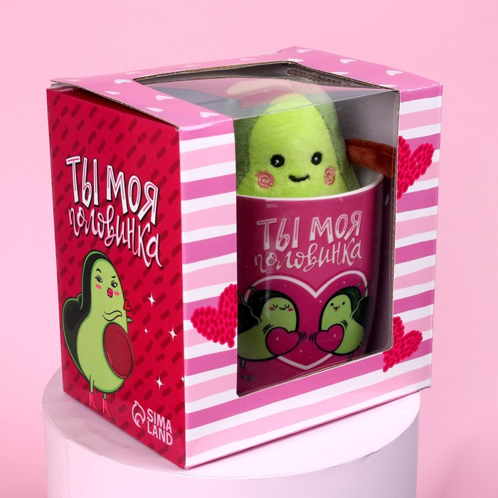 Набор «Ты моя половинка», мягкая игрушка в кружке, авокадо — Характеристики