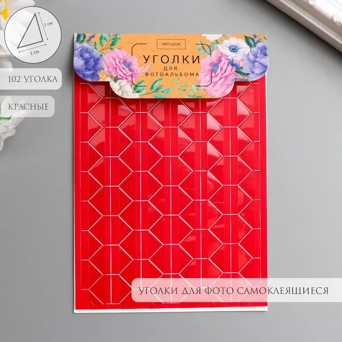 Набор уголков с кармашком для фотографий 102 уголка "Красный с прозр. плёнкой" 10,3х14,8 см — Характеристики