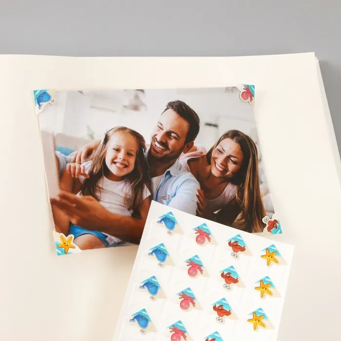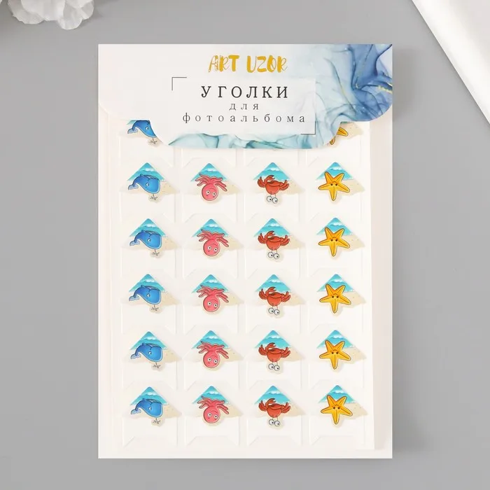 Набор уголков с кармашком для фотографий 24 уголка "Морские обитатели" 12,5х9 см