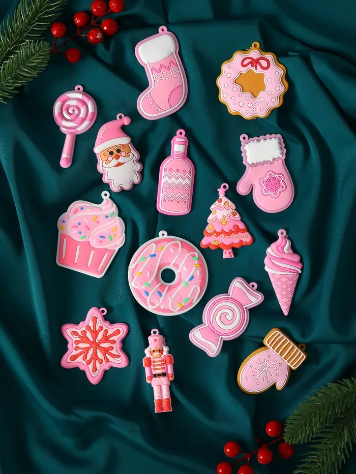 Набор украшений пластик 14 шт "Карнавал" 7 см и 8 м, розовый