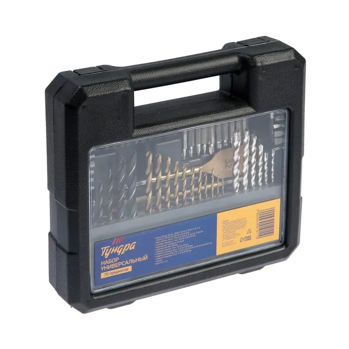 Набор универсальный ТУНДРА, сверла по дереву, бетону, металлу, биты, торц. головки, 70 шт. — Характеристики