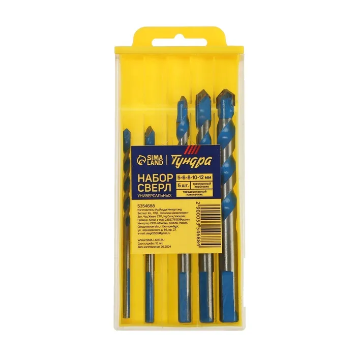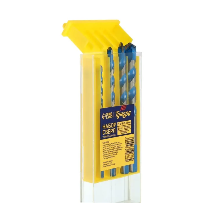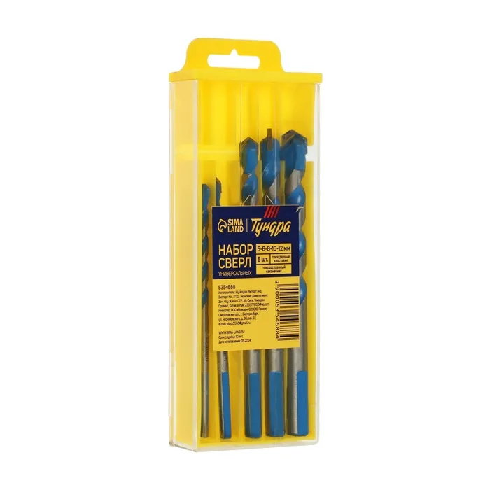 Набор универсальных сверл ТУНДРА, твердосплавный наконечник, 5-6-8-10-12 мм, 5 шт. — Характеристики