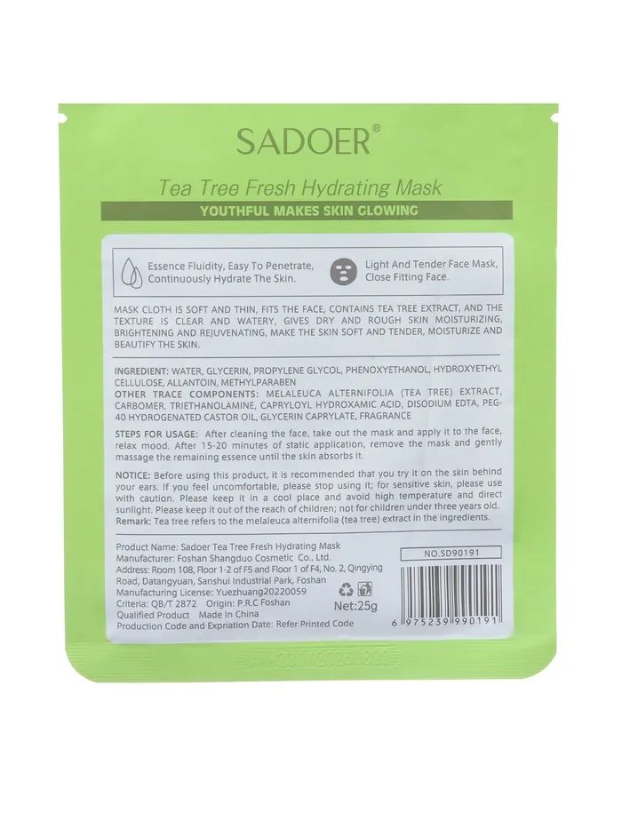 - Тканевая маска для лица с экстрактом зеленого чая, увлажняющая - 1 шт