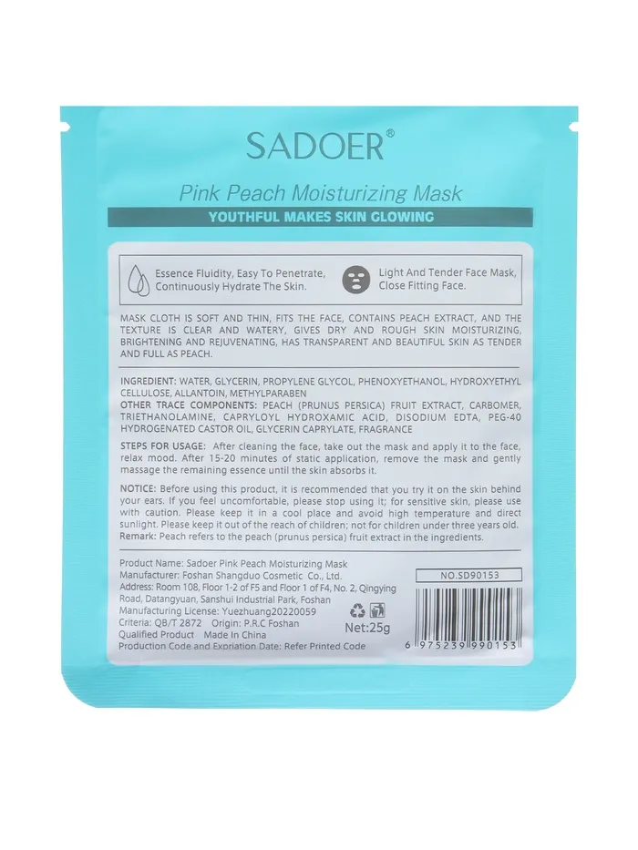 - Тканевая маска для лица с экстрактом персика, увлажняющая - 1 шт