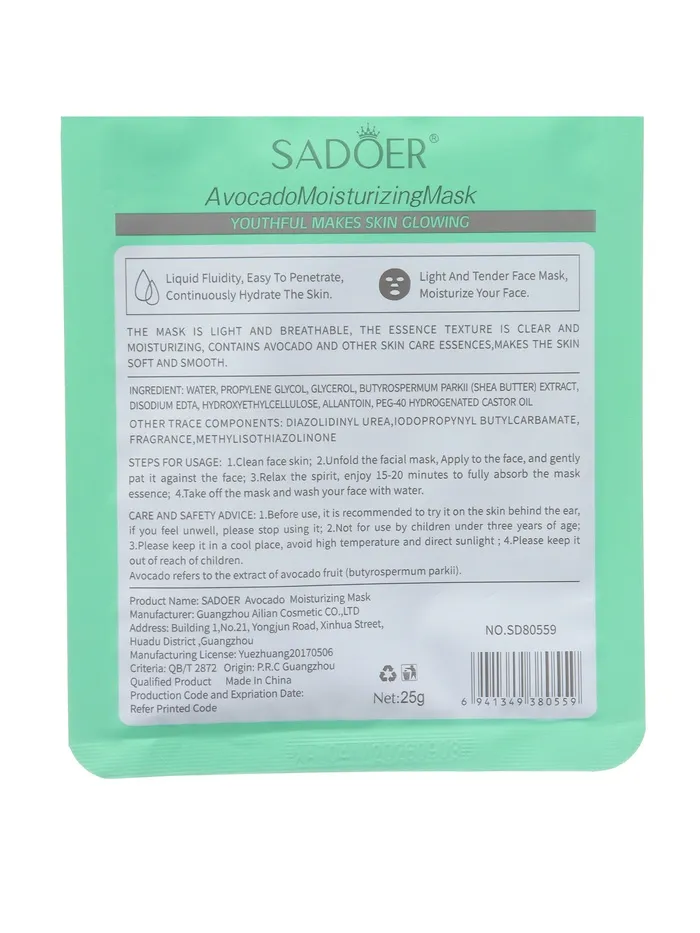 - Тканевая маска для лица с экстрактом авокадо, увлажняющая - 1 шт
