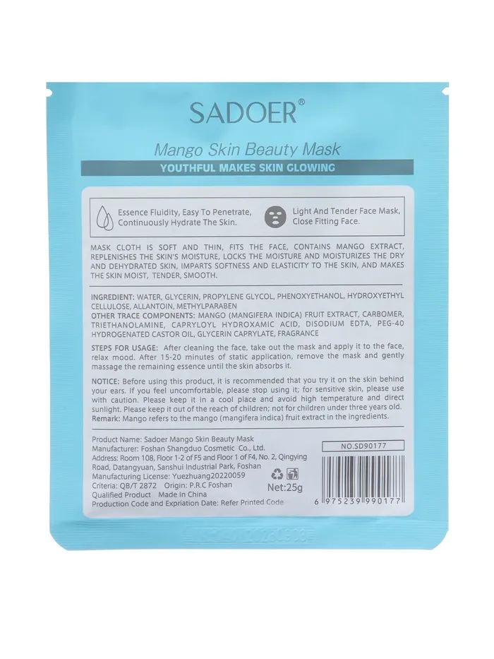 - Тканевая маска для лица с экстрактом манго, увлажняющая - 1 шт