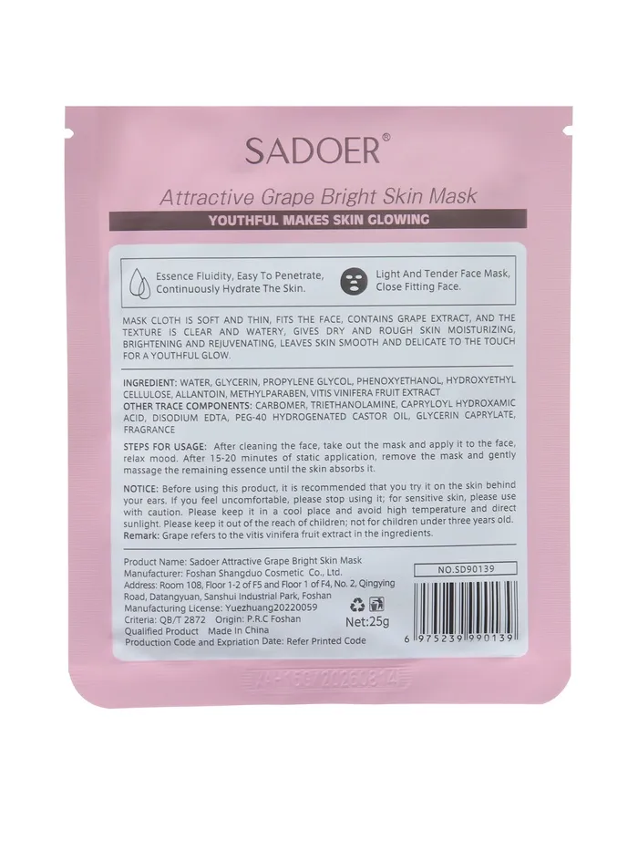 - Тканевая маска для лица с экстрактом винограда, увлажняющая - 1 шт