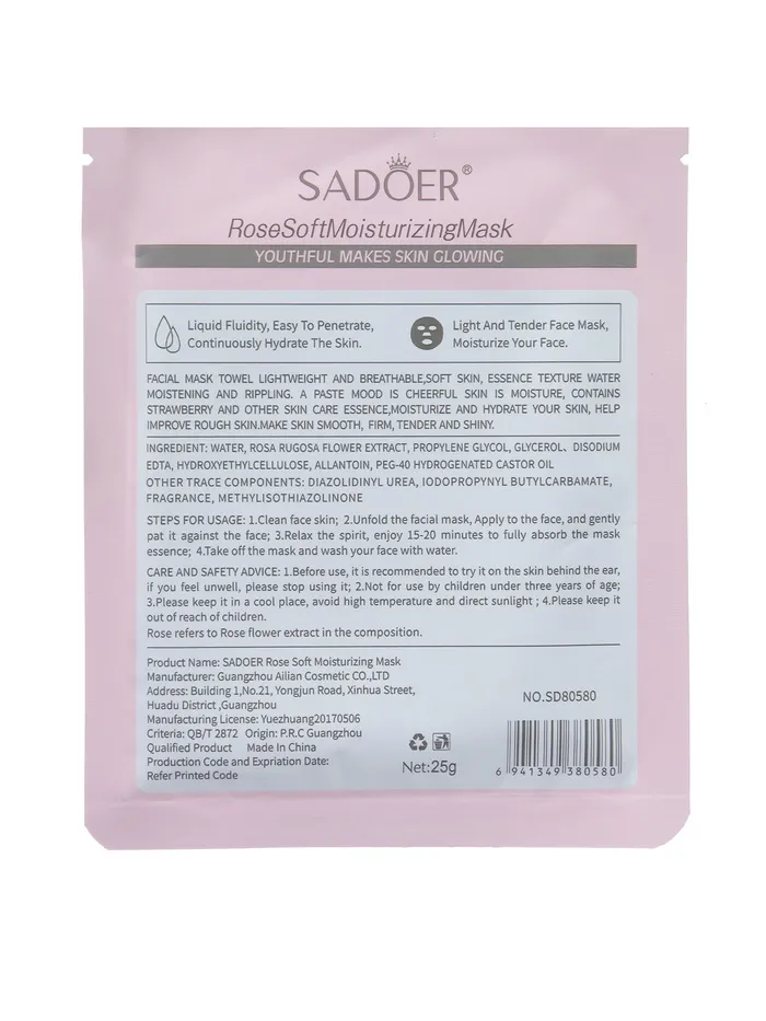 - Тканевая маска для лица с экстрактом розы, увлажняющая - 1 шт