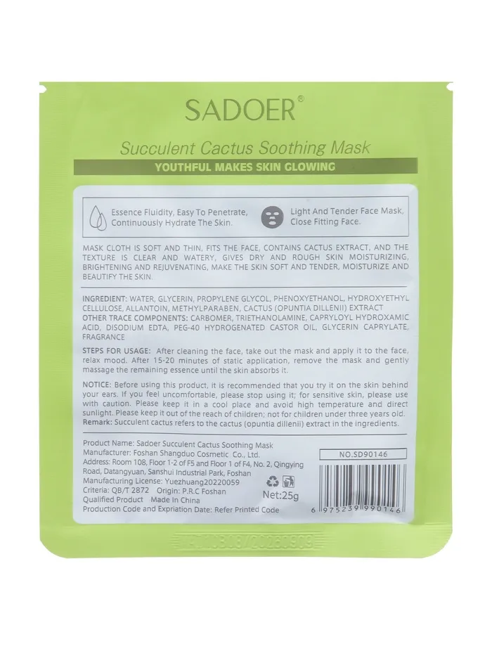 - Тканевая маска для лица с экстрактом кактуса, увлажняющая - 1 шт