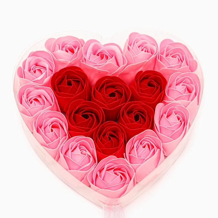 Набор в форме сердца, нежных 18 красно-розовых мыльных роз