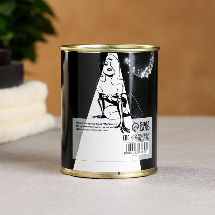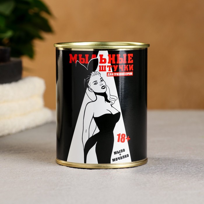 Набор в консервной банке «Мыльные штучки», мыло, мочалка, 18+ — Характеристики