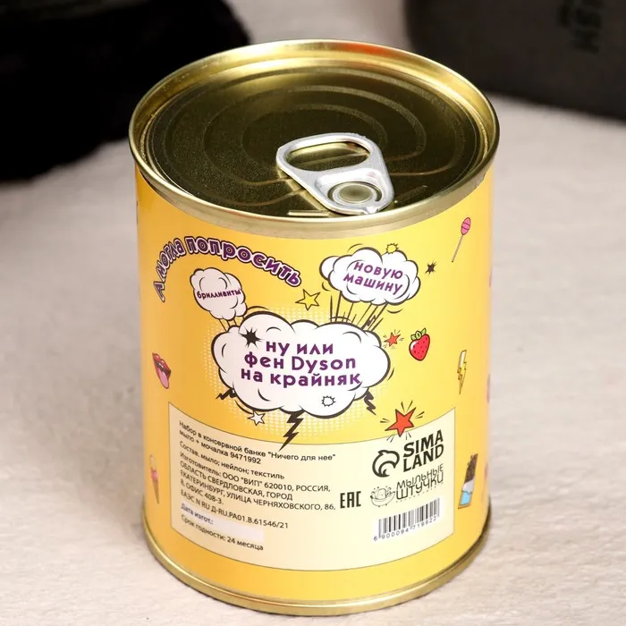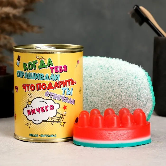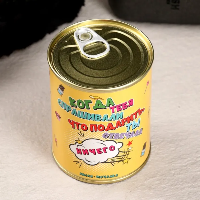 Набор в консервной банке "Ничего для нее" мыло + мочалка — Характеристики