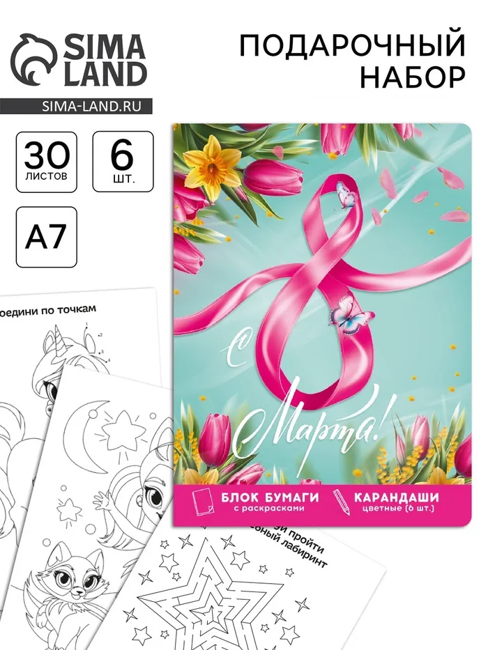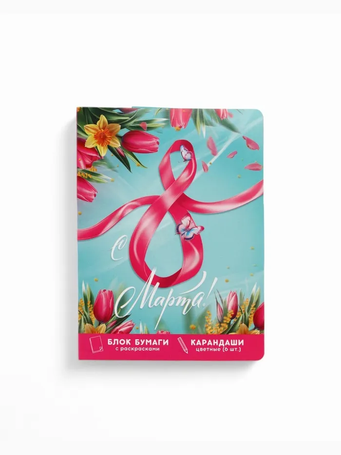 Набор в открытке «8 марта!», отрывной блок с заданиями и карандаши — Характеристики