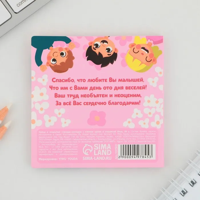 Набор в открытке «Для любимого воспитателя» стикеры 4×20 листов, отрывной блок 30 листов — Характеристики