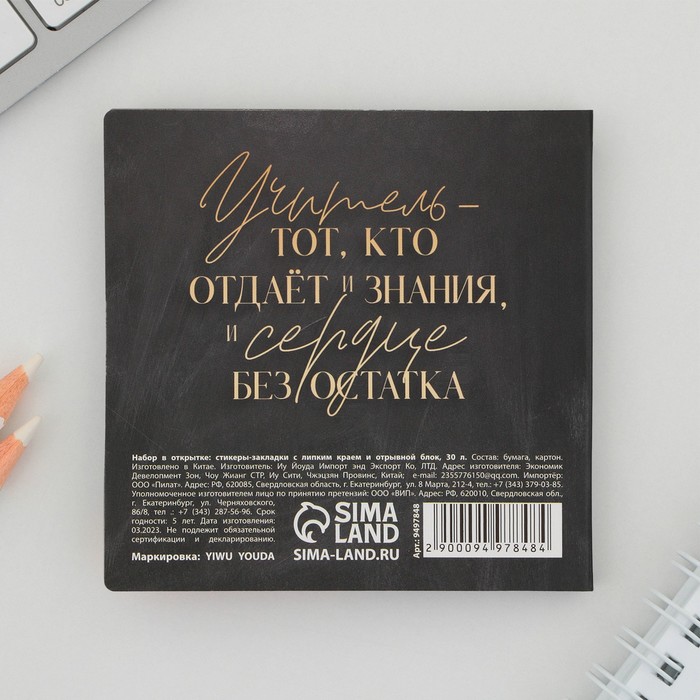 Набор в открытке «С днём учителя», стикеры 4×20 листов, отрывной блок 30 листов — Характеристики
