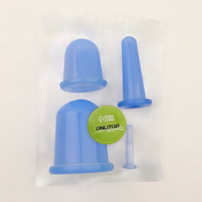 Набор вакуумных банок для массажа, силиконовые, d 7/5,5/3,9/1,6 см, 4 шт, цвет голубой