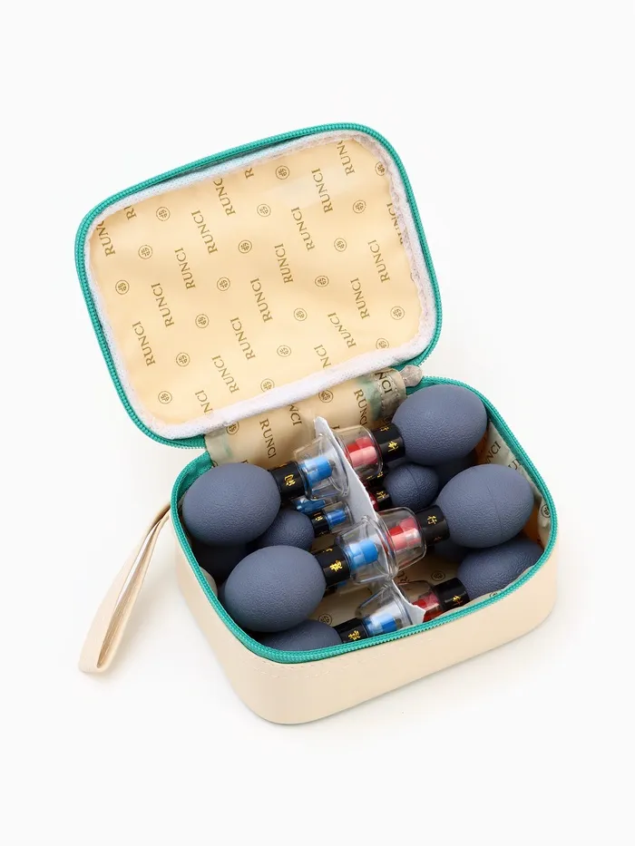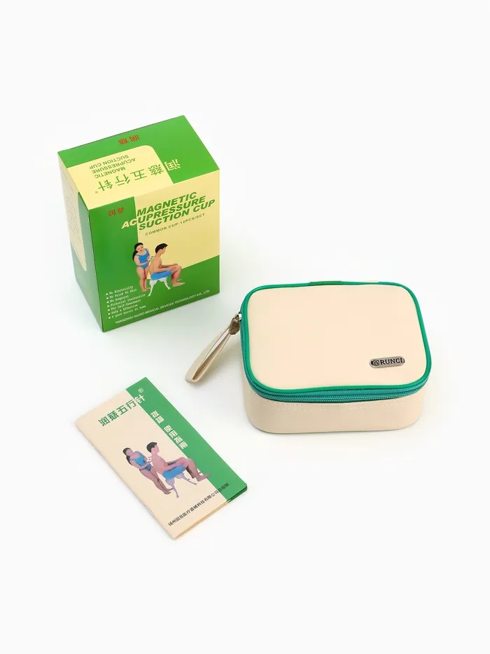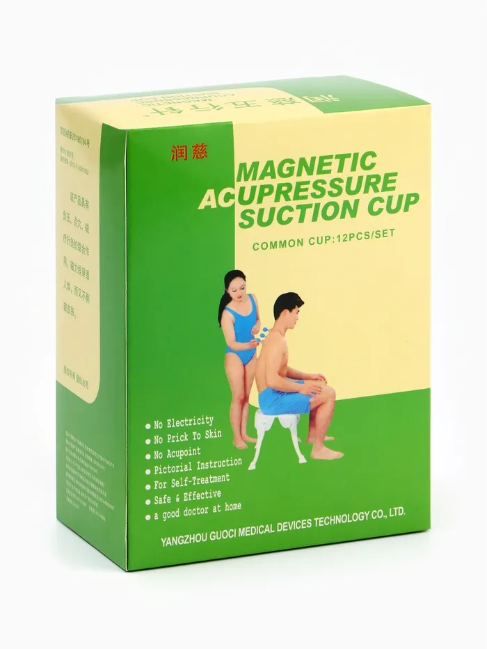 Набор из 12 магнитных банок, сочетающих эффект акупунктуры, аспирации, магнитотерапии, точечного массажа и аутогемотерапии.