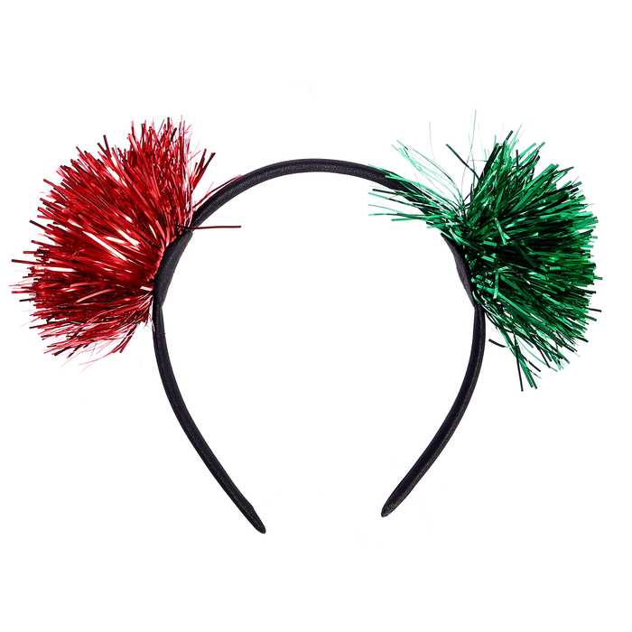 - Оригинальный ободок с помпонами из мишуры, который создаст праздничное настроение.