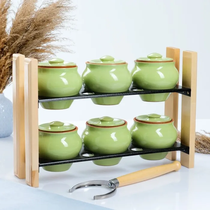 Набор "Вятская керамика №2" 6х0,5 + ухват + полка, салатовый — Характеристики