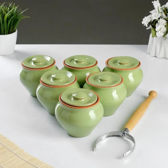 Набор "Вятская керамика №6" 0,5х6 + ухват, салатовый — Характеристики