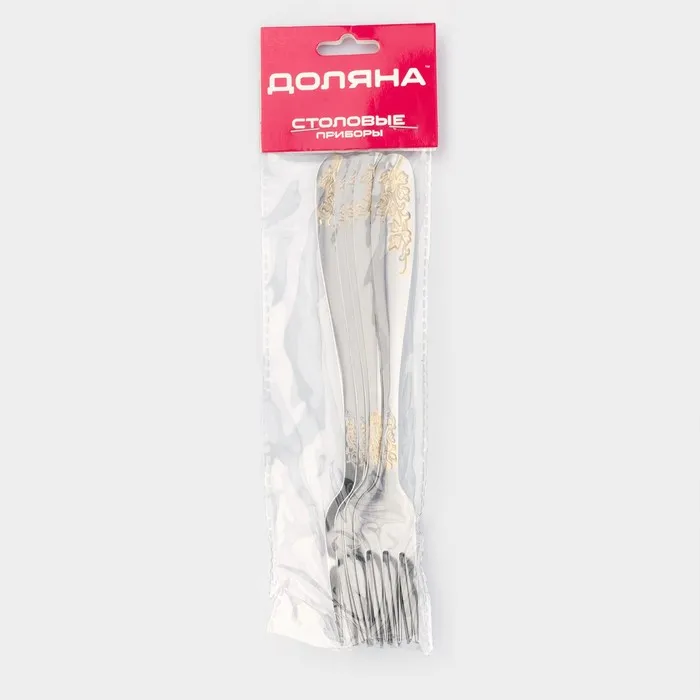 Набор столовых вилок «Букет» от Доляна — это изысканное украшение вашего стола. Вилки изготовлены из высококачественной нержавеющей стали, устойчивой к коррозии и механическим повреждениям. Серебристый цвет придаёт им элегантность и делает их идеальным дополнением к любому интерьеру. Удобная форма и гладкая ручка обеспечивают комфорт при использовании. Этот набор станет прекрасным подарком для ваших родных и друзей и подчеркнёт ваш безупречный вкус.