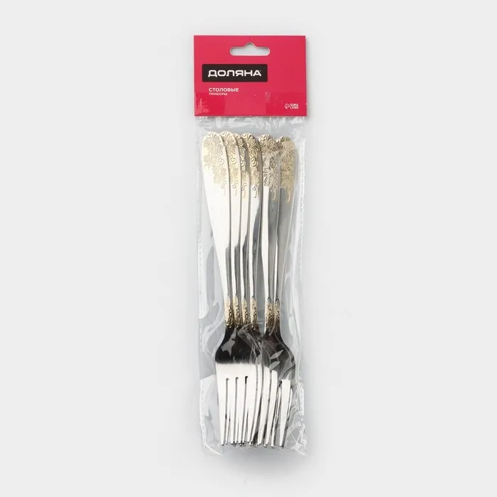 Набор вилок столовых из нержавеющей стали Доляна «Букет», h=20.5 см, 6 шт., серебристые — Характеристики