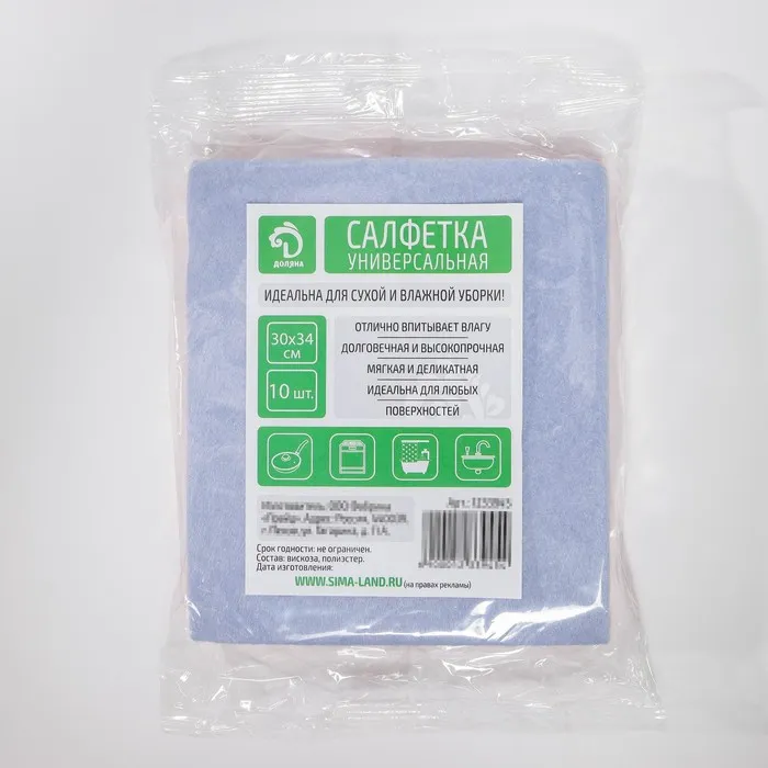 Набор вискозных салфеток универсальных Доляна, 30×34 см, 10 шт, плотность 80 г/м², МИКС — Характеристики