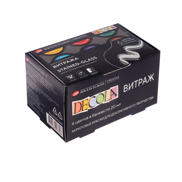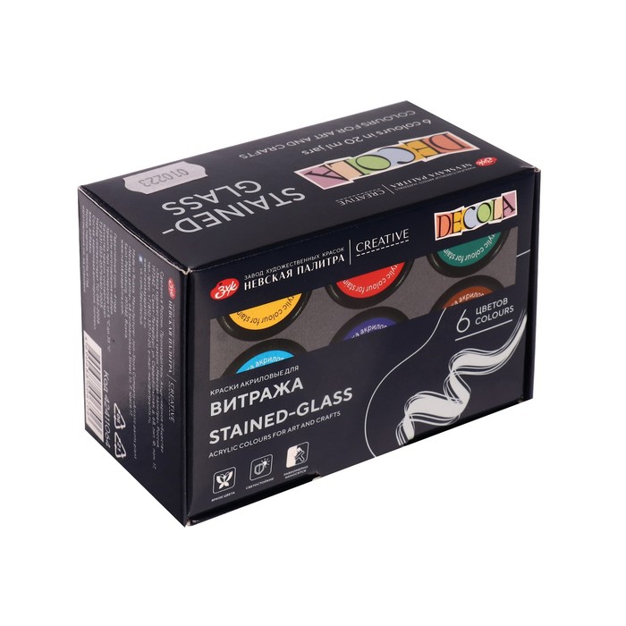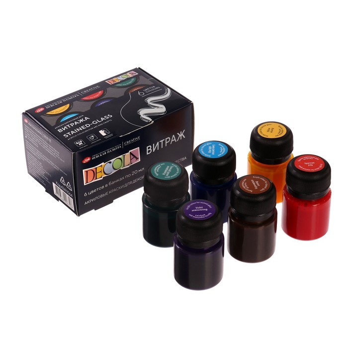 Набор витражных красок по стеклу Decola, 6 цветов х 20 мл, 42411064 — Характеристики