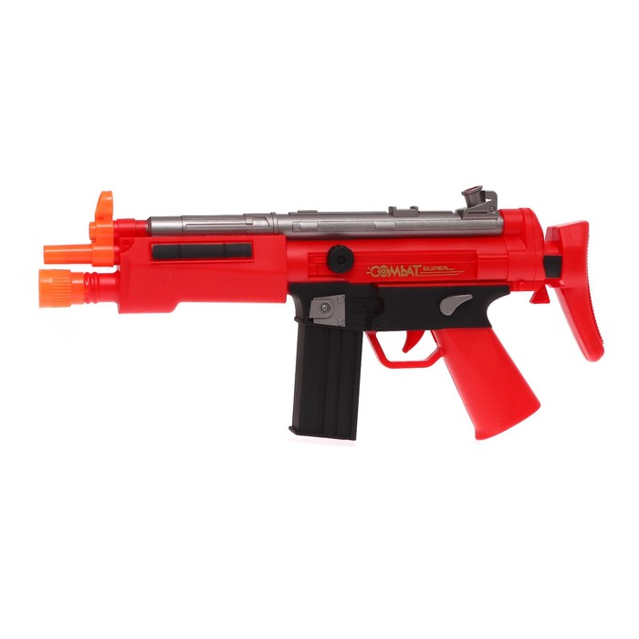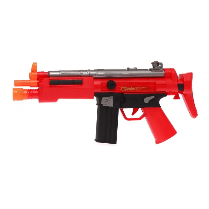 - Автомат издаёт звуки выстрелов и вибрирует. Для работы нужны батарейки типа AA (LR 6).