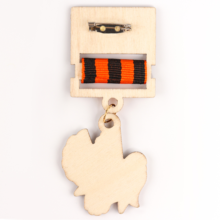 - Деревянный орден на булавке с георгиевской лентой завершит образ.