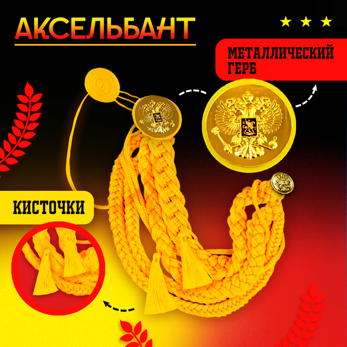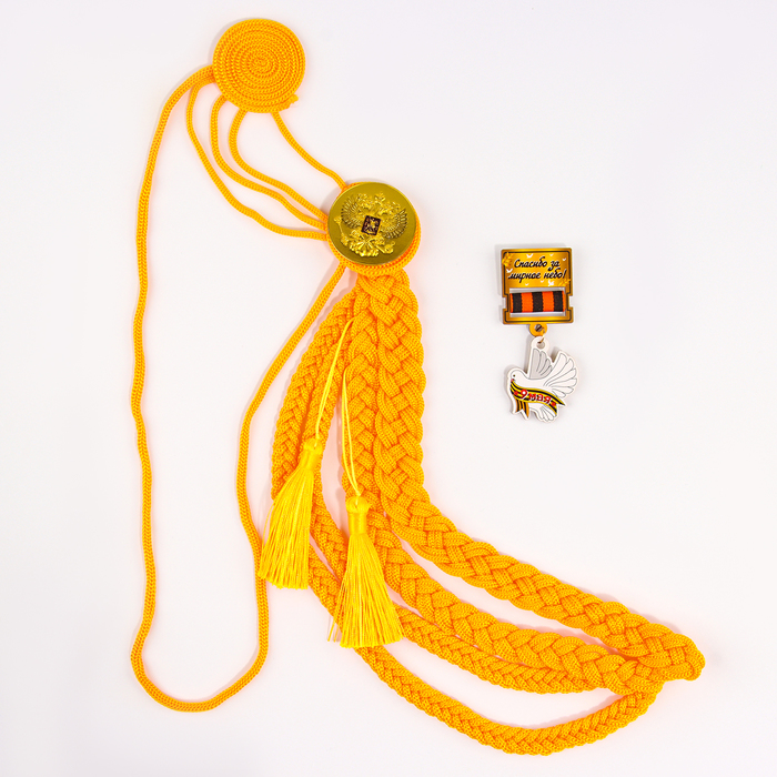 - Аксельбант выполнен в классическом золотом цвете, который придаёт ему торжественный вид.