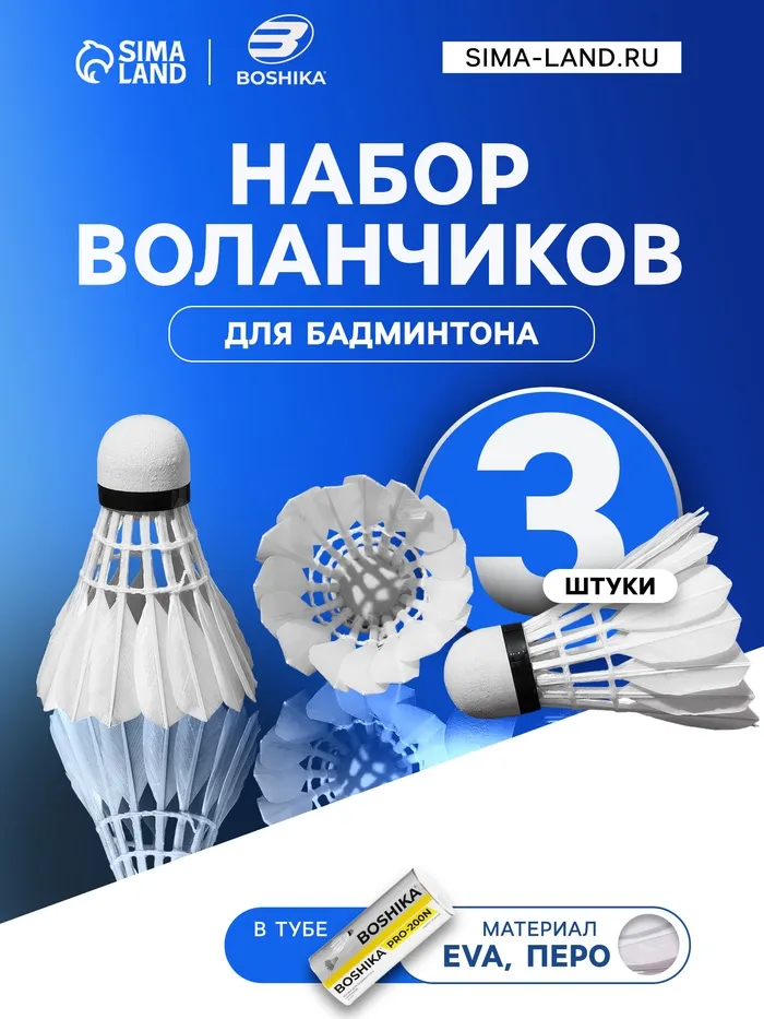 Воланы для бадминтона BOSHIKA с юбкой из гусиных перьев предназначены для начинающих и опытных спортсменов.