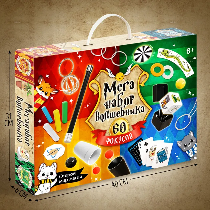 Набор волшебника МЕГА, 60 фокусов, в подарочной коробке — Характеристики