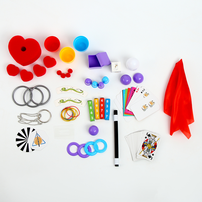 - Фокусы из набора рассчитаны на разный уровень сложности, что позволяет начать с простых трюков и постепенно переходить к более сложным
