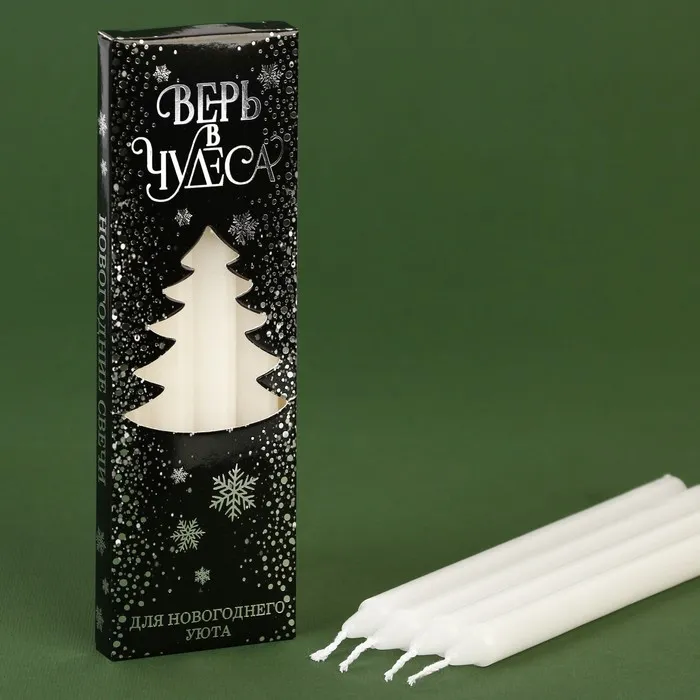 Набор восковых свечей новогодний «Верь в чудеса», на Новый год, 4 шт., белые, 15 х 1 х 1 см. — Характеристики