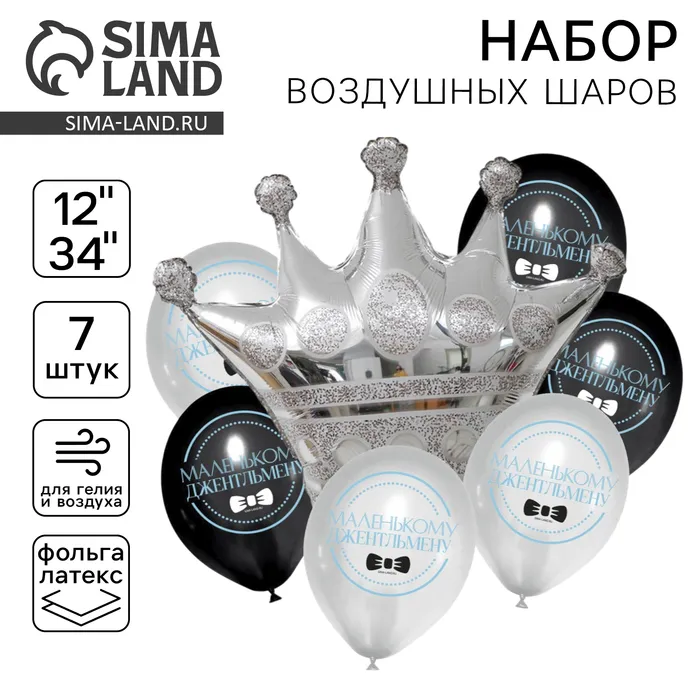 Набор воздушных шаров «Маленький джентльмен», латекс, фольга, 7 шт. — Характеристики