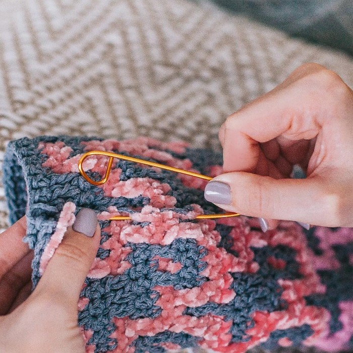 Скиньте петли на булавку и закройте её. Так они будут надёжно закреплены до тех пор, пока снова не понадобятся в работе.