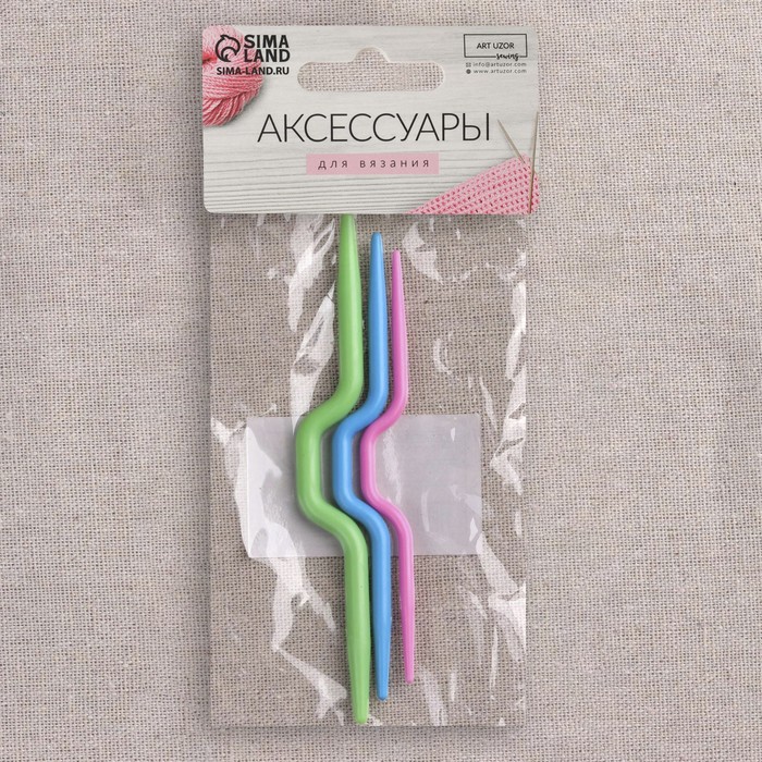 Эти приспособления ― настоящая палочка-выручалочка для начинающих мастериц. Они предназначены для вязания кос, жгутов и других узоров с переплетениями. На изгибе спицы размещают петли, снятые для дальнейшего перехвата. Благодаря изгибу петли не соскальзывают во время вязания, а когда необходимо их переместить, это удобно делать всё на той же вспомогательной спице, снимая петли с любой стороны.