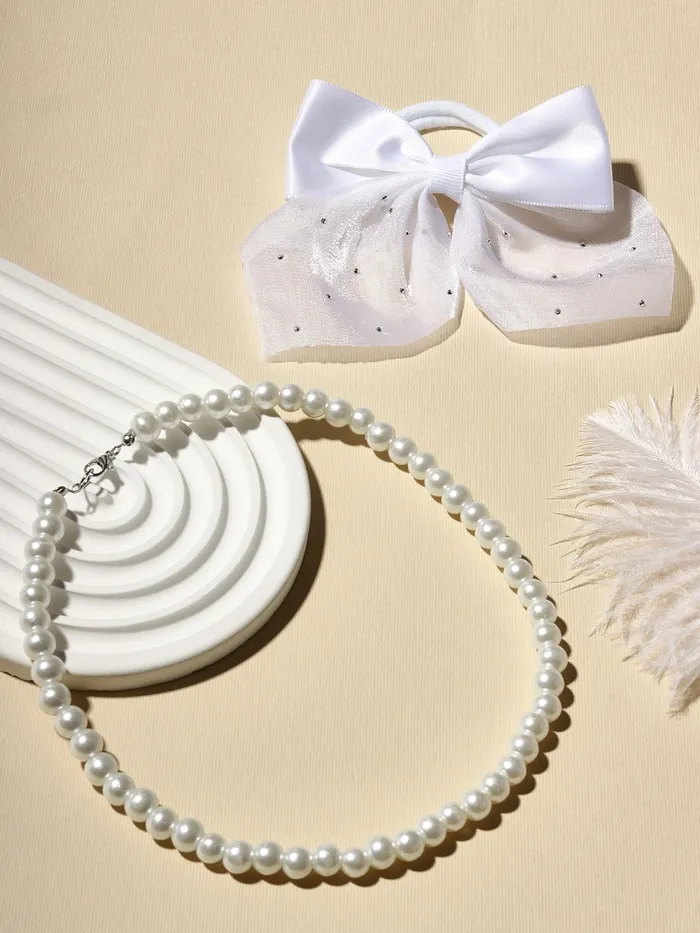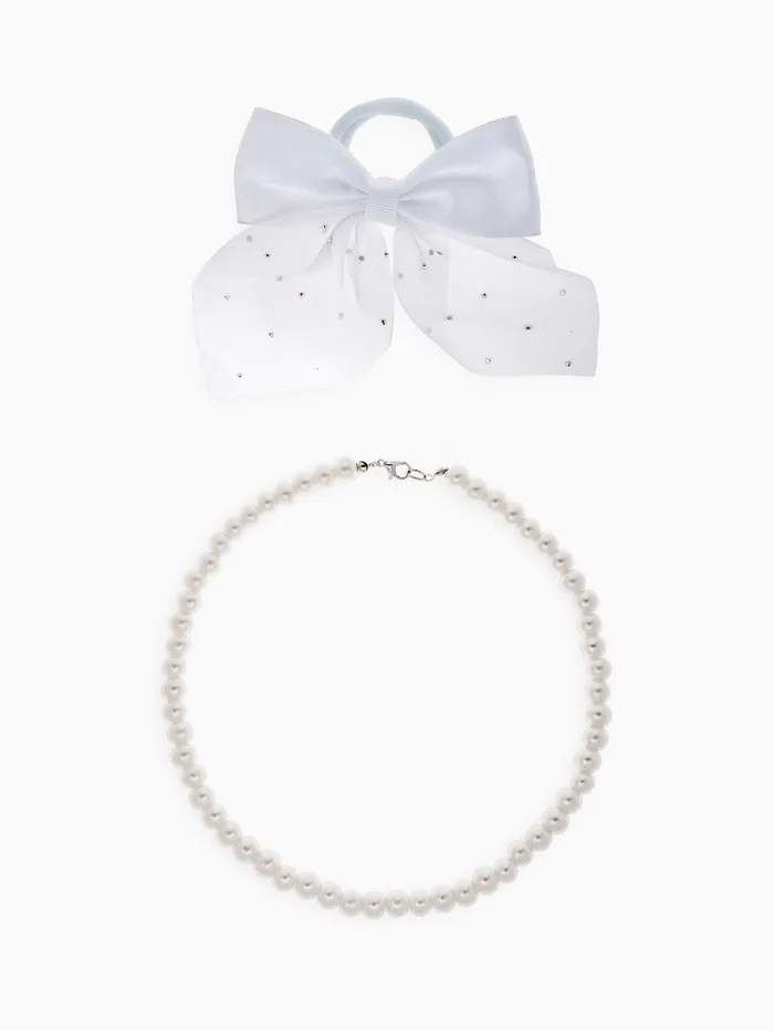 Набор детский из 2 предметов: резинка и бусы. Стильный комплект, который станет любимым аксессуаром для маленькой модницы. Бусы добавят яркости образу, а резинка прекрасно дополнит прическу. Выполнен из безопасных и качественных материалов, подходящих для детского использования.