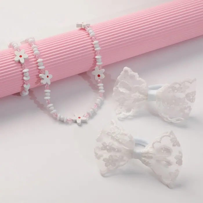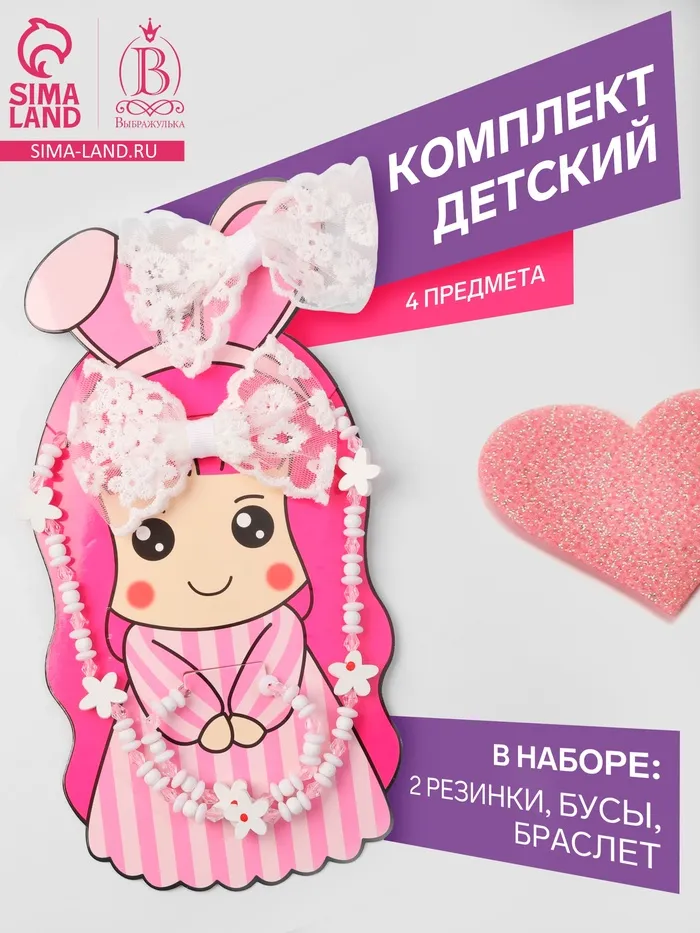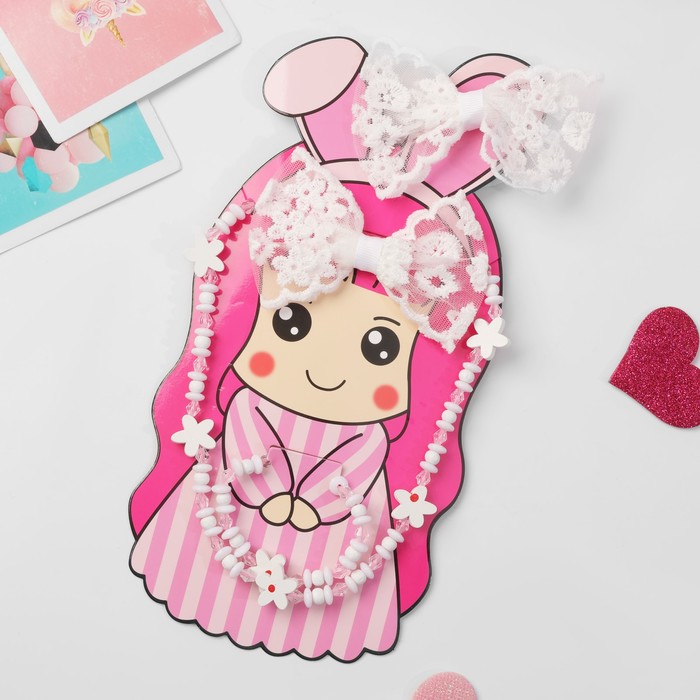 Набор «Выбражулька» 4 предмета: 2 резинки, бусы, браслет, зайка, цвет белый — Характеристики