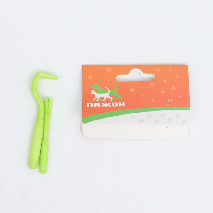 Устройство предназначено для безопасного удаления клещей из кожи человека или животного, выполнен в виде пластикового крючка. В отличие от народных средств, крючок имеет ряд преимуществ: не сжимает тело клеща, предотвращая тем самым попадание слюны паразита в кровь, голова клеща не отрывается от тела, благодаря компактным размерам крючок легко помещается в карман.
