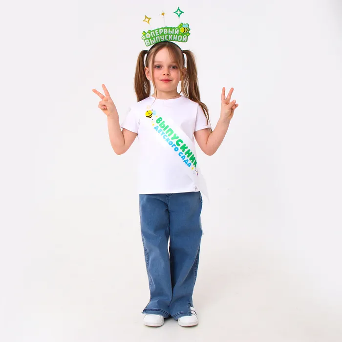 Набор выпускника «Мой первый выпускной» 2 предмета: лента белая, ободок — Характеристики