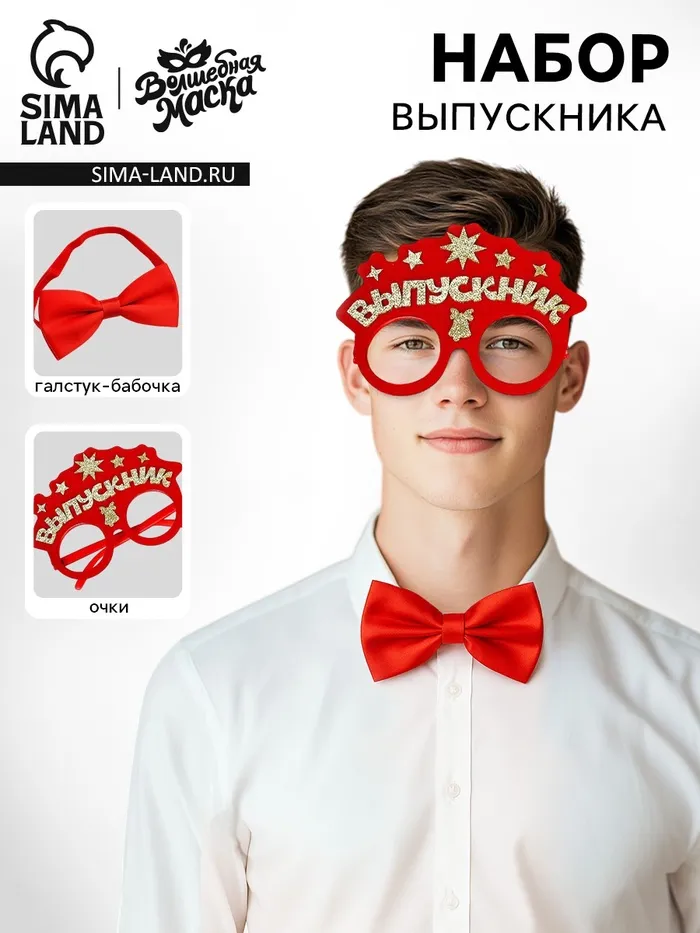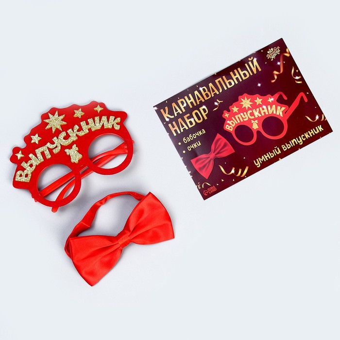 Набор выпускника «Умный выпускник» 2 предмета: очки, галстук-бабочка, красный — Характеристики