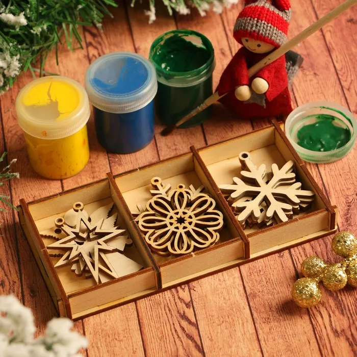 Набор заготовок для творчества «Снежинки и игрушки», 6 видов, 12 шт., размер 6×5 см