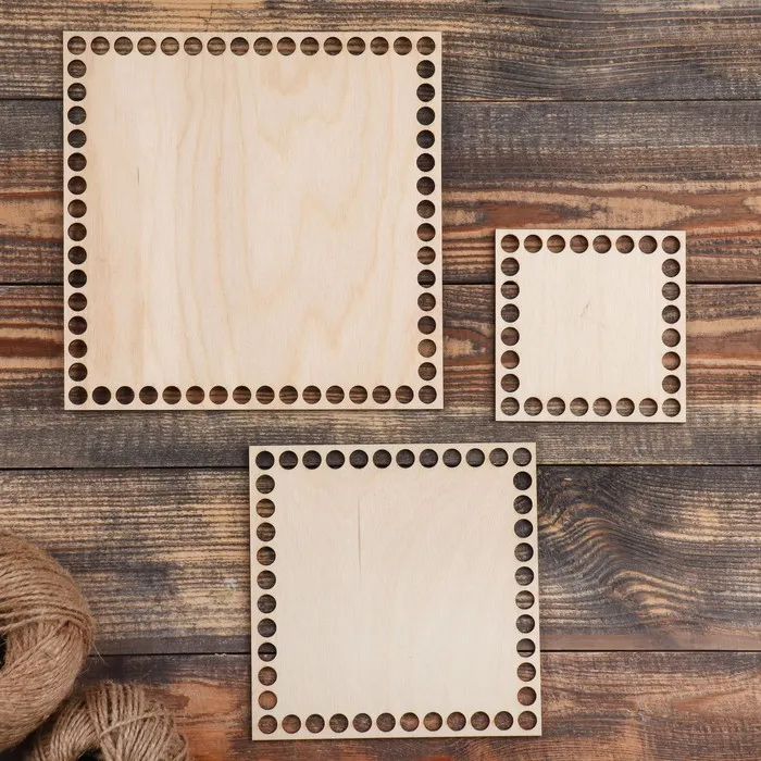 Набор заготовок для вязания «Квадрат», 3 шт., донышко, фанера 3 мм, d=9 мм — Характеристики