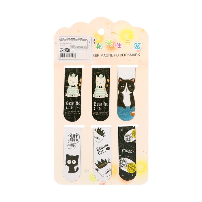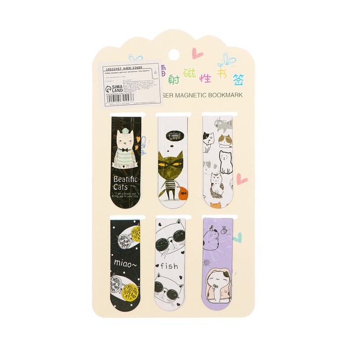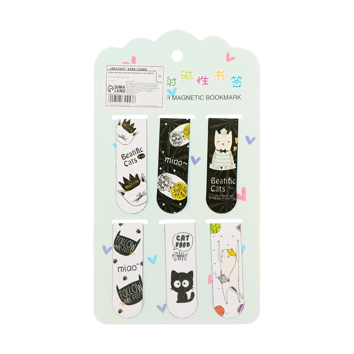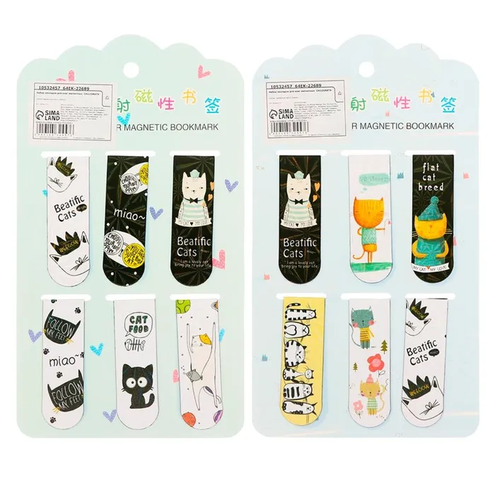 Набор закладок магнитных для книг 6 штук Зверушки 60*19мм МИКС CALLIGRATA — Характеристики